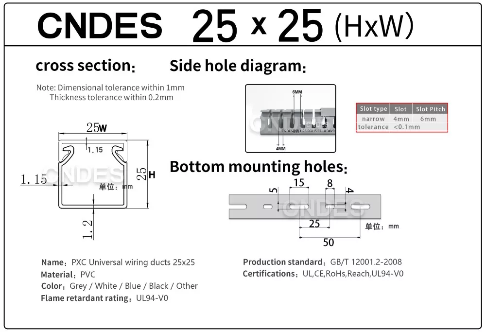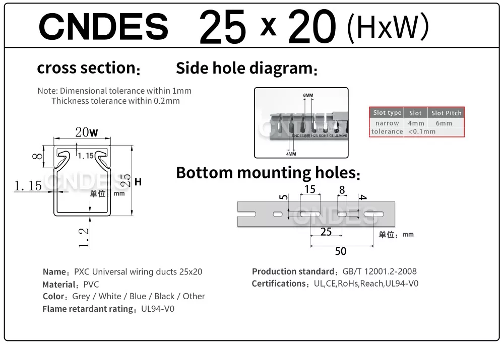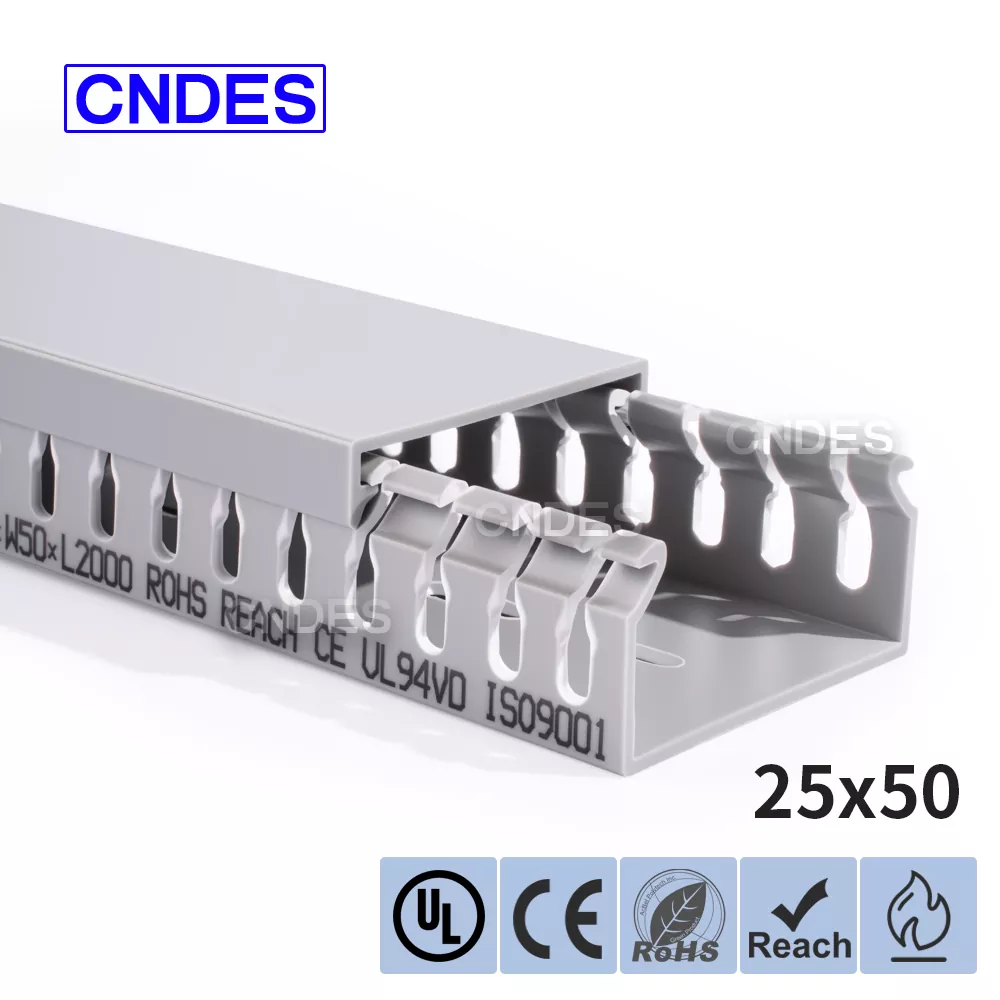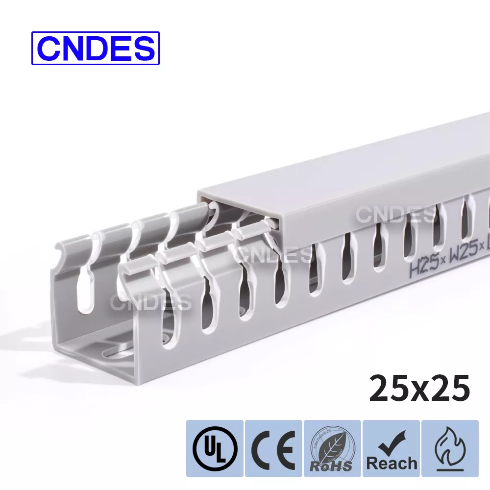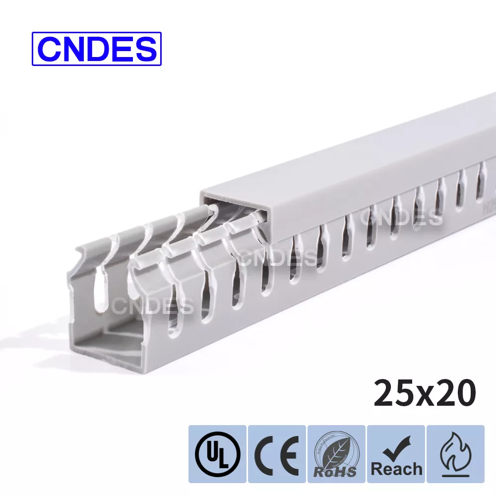 Produk ini ialah saluran pendawaian PVC berslot berketinggian rendah yang direka bentuk untuk menyusun, melindungi dan membimbing kabel elektrik di dalam panel kawalan. Ketinggian 25mm membolehkan ia dipasang: