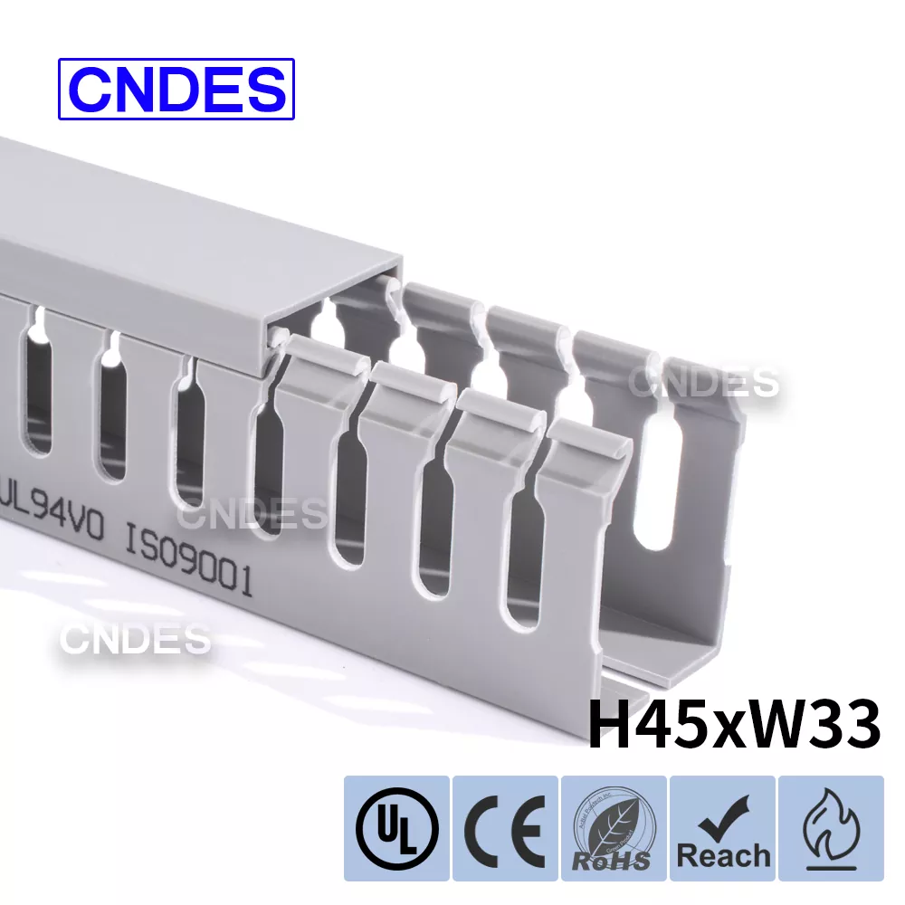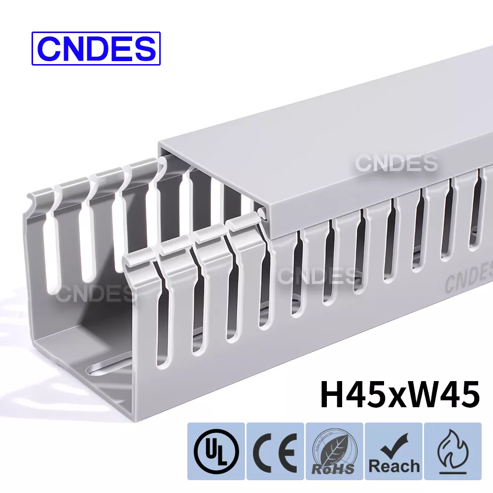 Memperkenalkan Saluran Penutup Kawat PVC Berslot Ketinggian 45mm Ketinggian Tersuai daripada CNDES, penyelesaian pilihan anda untuk pengurusan kabel yang berkesan dalam pelbagai aplikasi. Sama ada anda mereka bentuk panel elektrik baharu, menambah baik persediaan pendawaian mesin anda atau mempertingkatkan sistem elektrik rumah anda, Saluran Penutup Kawat PVC Berslot Ketinggian kami menyediakan keseimbangan fungsi dan daya tarikan estetik yang sempurna.