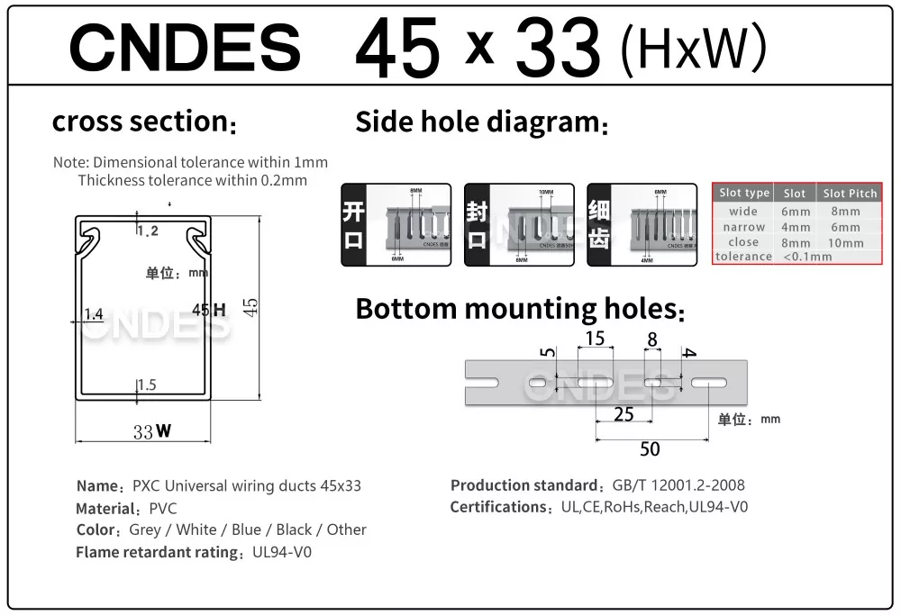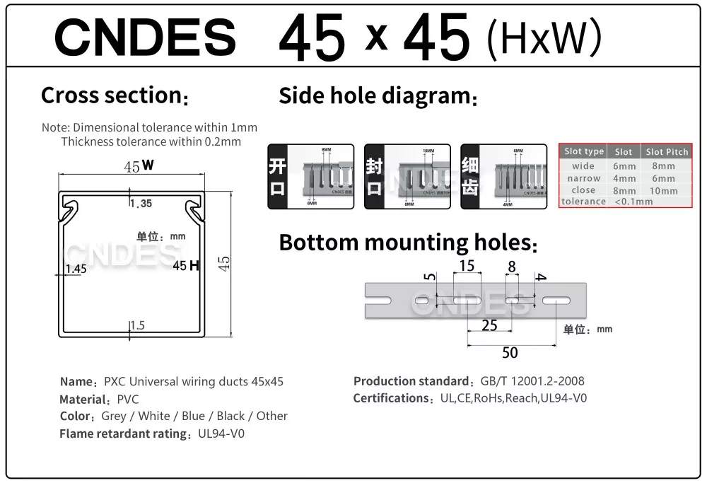 Sebagai pengilang profesional, kami ingin memberikan anda 45mm tinggi CNDES Slotted PVC Wire Cover Duct. Termasuk 45*25, 45*33, 45*45.