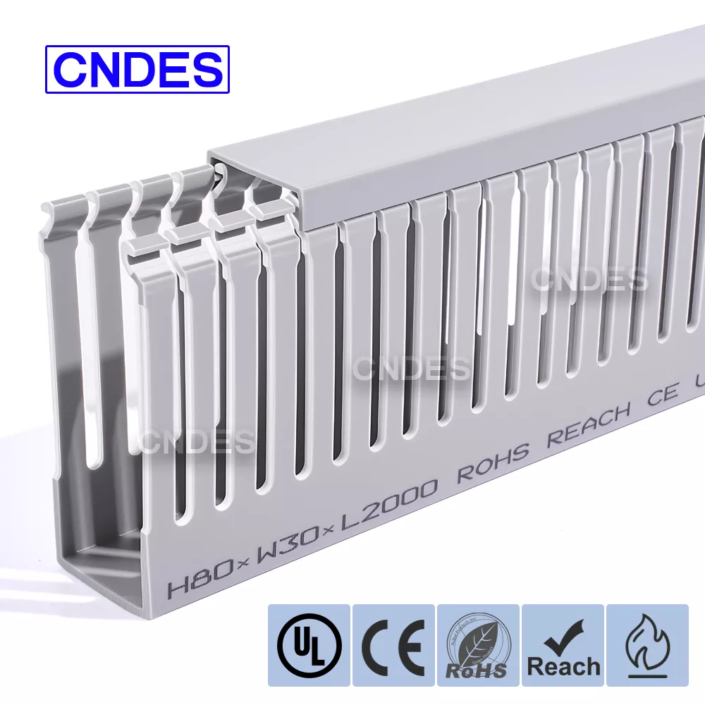 Salur Pendawaian PVC Slot Terbuka 80×30 Berprestasi Tinggi CNDES direka untuk pengurusan kabel yang cekap, teratur dan fleksibel dalam panel kawalan industri, kabinet elektrik dan kabinet automasi. Dengan ketinggian hanya 30 mm dan lebar hanya 80 mm, saluran padat ini menyediakan penyelesaian pengurusan kabel berketumpatan tinggi sambil memudahkan pemasangan, penyelenggaraan dan peningkatan masa hadapan.