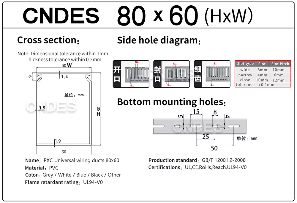 4. Saluran Pendawaian PVC Berslot UL 80×60 kami mematuhi sepenuhnya piawaian pensijilan UL, CE, RoHS dan REACH, menjadikannya sesuai untuk projek di seluruh dunia.