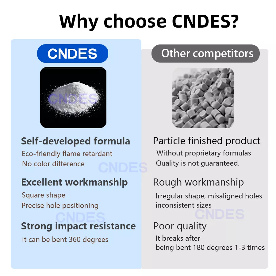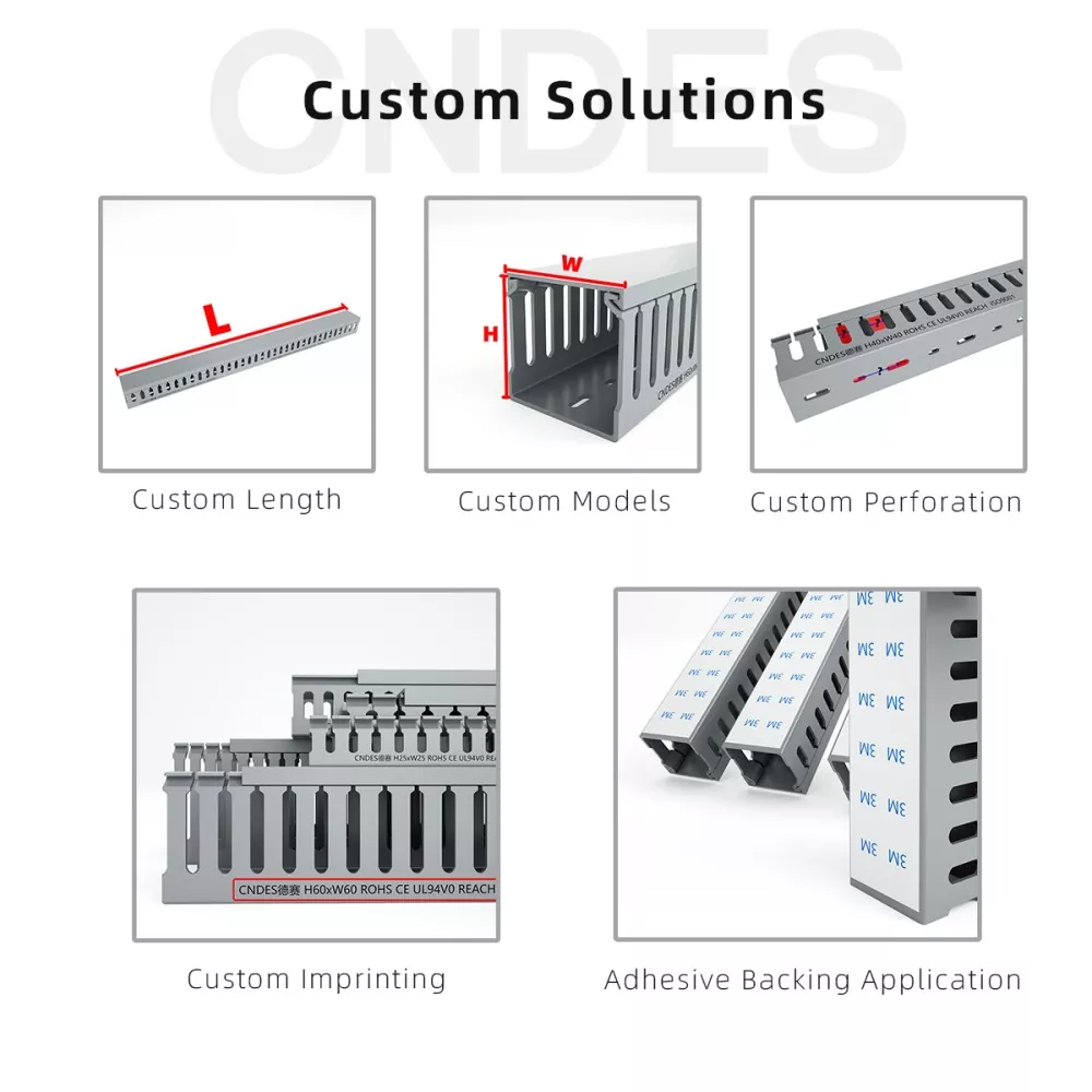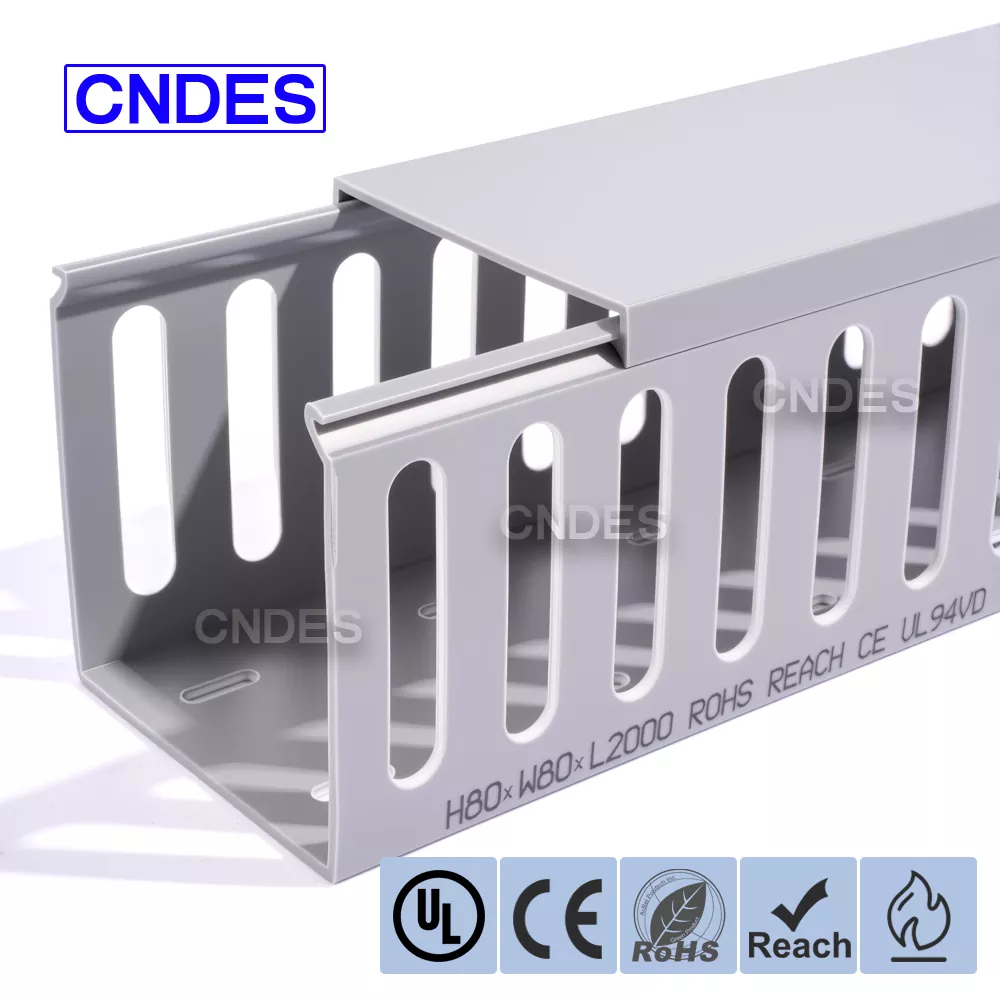 Apabila dulang kabel standard gagal untuk memuatkan abah-abah pendawaian yang kompleks, Saluran Pendawaian Papan Suis PVC Berslot 80×80 Tersuai CNDES ialah pilihan terbaik anda. Dengan ruang dalaman yang besar 80mm*80mm, ia direka khusus untuk senario permintaan tinggi seperti kabel tulang belakang pusat data, kelompok kuasa peralatan industri dan pendawaian berpusat dalam kabinet kawalan besar. Ia dengan mudah menampung dan mengatur sejumlah besar kabel, mengucapkan selamat tinggal kepada kekacauan dan kesesakan untuk selama-lamanya.