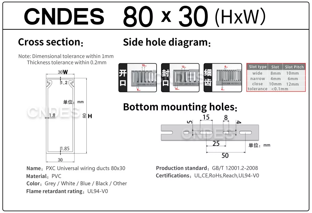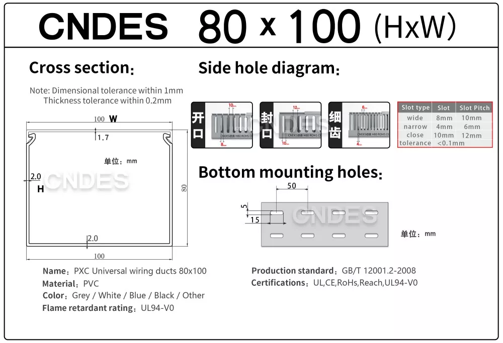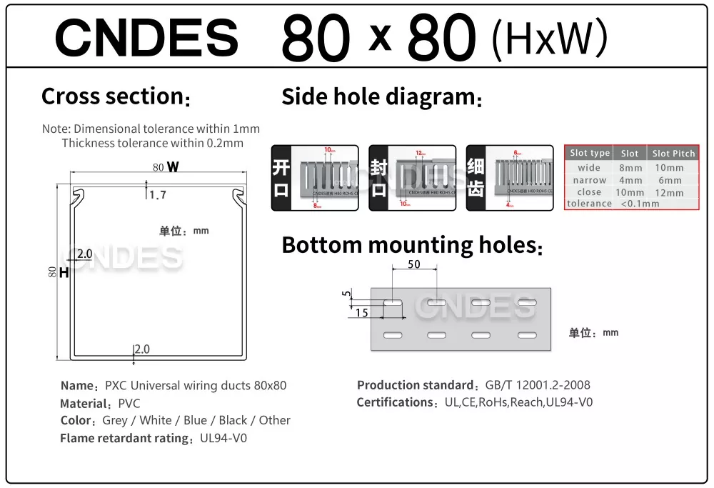 Saluran Kabel Automasi PVC Berslot 80 Ketinggian Tersuai dari CNDES direka bentuk untuk pengurusan kabel yang cekap dalam sistem automasi industri. Dengan ketinggian 80 mm dan reka bentuk berlubang, saluran ini menyediakan ruang yang luas untuk pendawaian berketumpatan tinggi sambil memastikan kabel teratur dan dilindungi dalam sistem kawalan kompleks, PLC dan aplikasi pendawaian mesin.